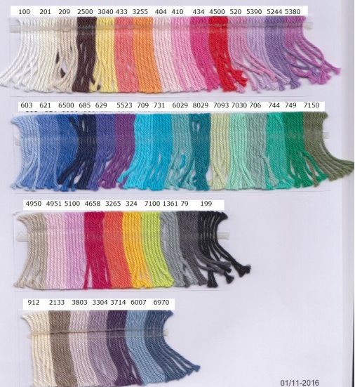 LL 165m = 50g Nadel 3 - 3,5mm MP 10cm = 26M 30° Wollwaschgang mit flüssigem Wollwaschmittel, bei Bedarf laut Herstellangabe durchaus bis 60° waschbar! Das ideale Garn für Abschminkpads, Wasch- & Spüllappen, Topflappen, Gästetücher ... Die Qualität "Cotton nr. 8" ist vergleichbar mit der Qualität "ton in ton" von Hjertegarn. Buchbare Farben sind sofort verfügbar. Weitere Farben gern auf Anfrage. Bitte kontaktieren Sie mich. Herstellerangaben: Hjerte Garn A/S Fallesgardevej 8a Gronhoj 7470 Karup Danmark www.Hjertegarn.com Salg@hjertegarn.com Tel (+45) 66 11 41 95