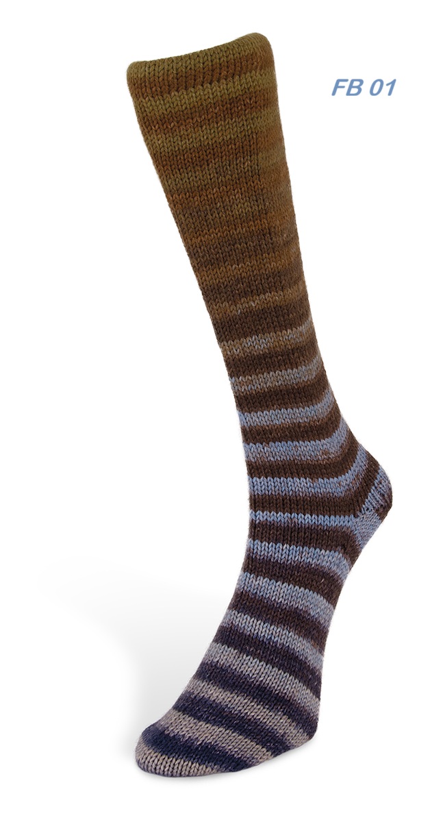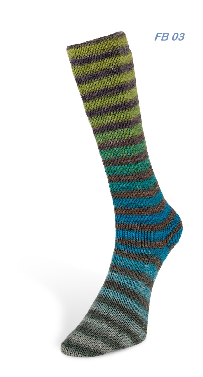 Dieses Sockegarn kombiniert Uni-Farben mit leuchtenden Streifen für einen dynamischen und eleganten Lool. Ein dickes und warmes Garn, perfekt für robust-kuschlige Socken. Die Perfect-Cycle-Technologie garantiert indentische Socken mit makellosem Muster.